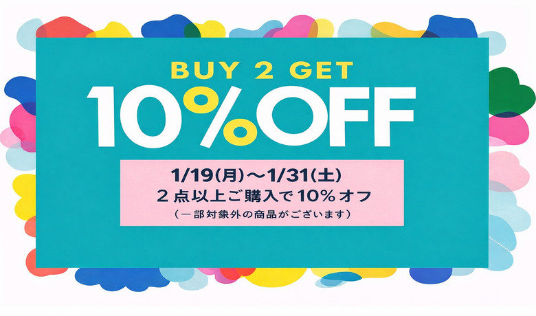 1/19~1/31の期間中 商品2点以上・購入金額55,000円以上で10%OFFになるキャンペーンを開催!