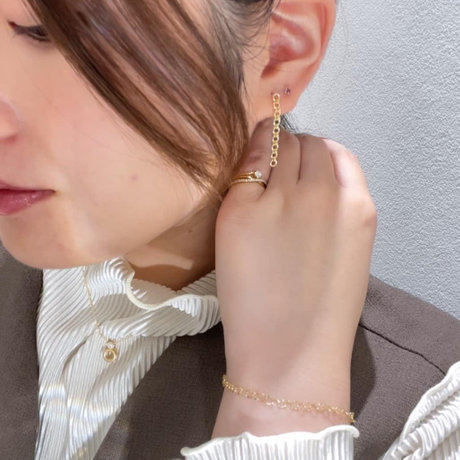 薬指のリングとブレスレットはジュエリーコーディネート初心者さんにもお選びいただきやすい同じシリーズのジュエリーとなっております!