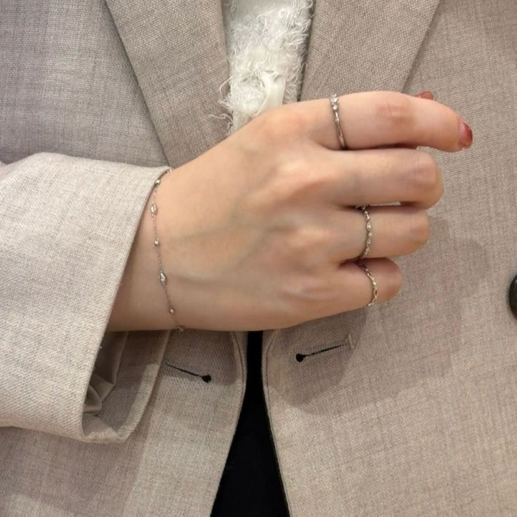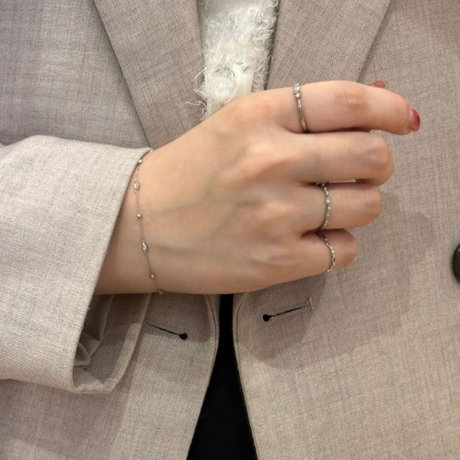 華奢なデザインを重ねたり、手もとのバランスを意識したコーディネートで、