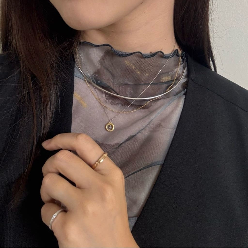 艶やかなシルバーにチェーンが重なるチョーカーは、1本でお洒落度がググッと増します!!