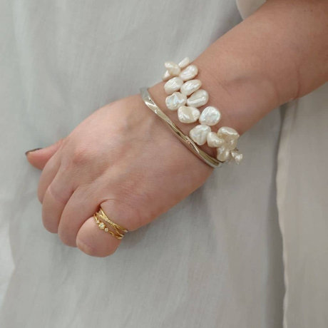パールのブレスレットで甘々になり過ぎないようにバングルを合わせました!