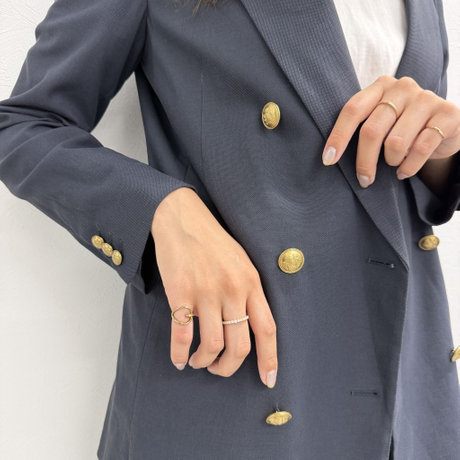 シンプル地金のピンキーリングとデザインのあるダイヤモンドリングで、シンプルコーデを組みました!