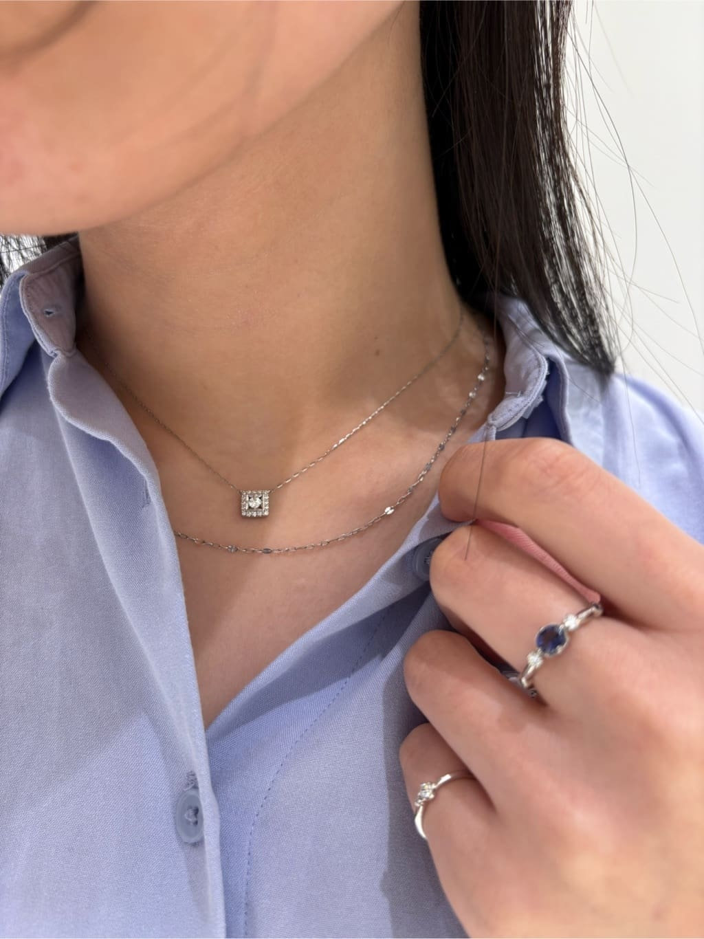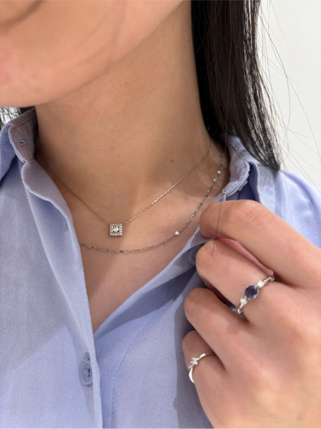上品な雰囲気に見える“Wish upon a star®” ダイヤモンド を、チェーンと重ねてクールなイメージにしました。