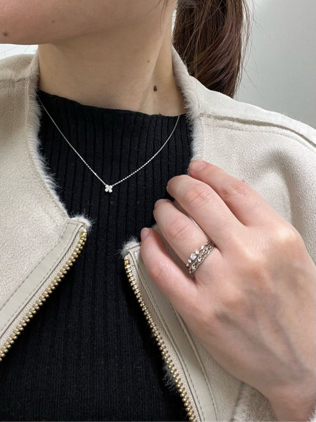 ネックレスやリング、新作アイテムを取り入れたコーディネートは、ひとつでも重ねても楽しめる万能ラインナップ。