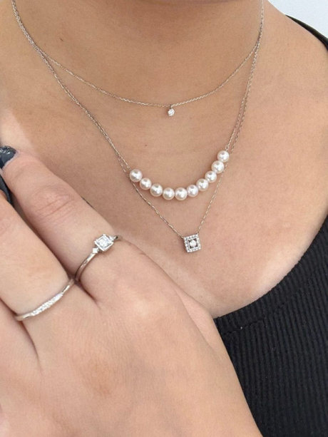 1番下のネックレスは襟ぐりに合わせて長さを変えられるフリーアジャスター付きなので重ね着けの時にバランスがとりやすいです⭐️