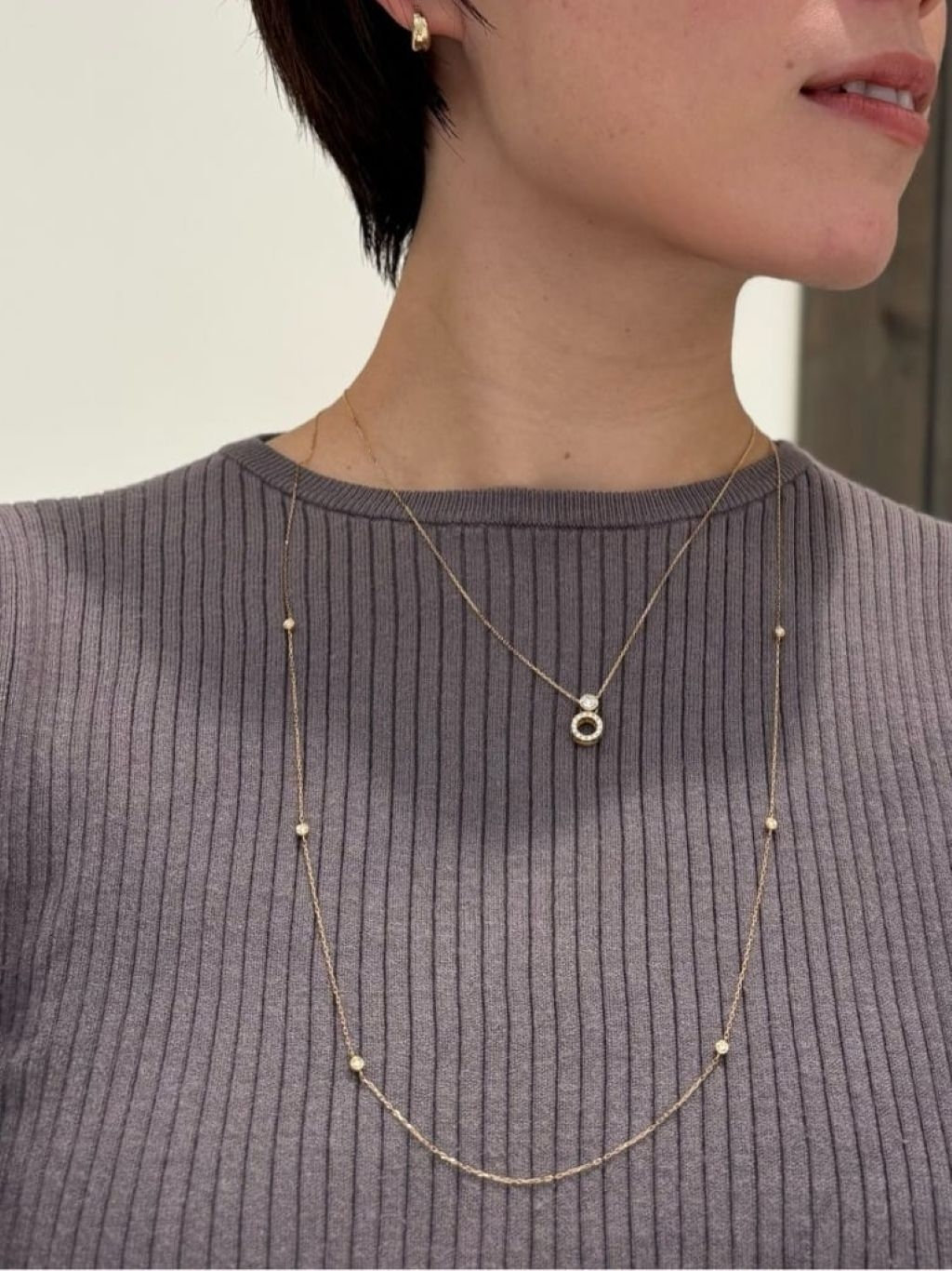 サークルモチーフのネックレスはペンダントトップが2パーツになっており、チェーンの通し方でいくつも楽しめます!