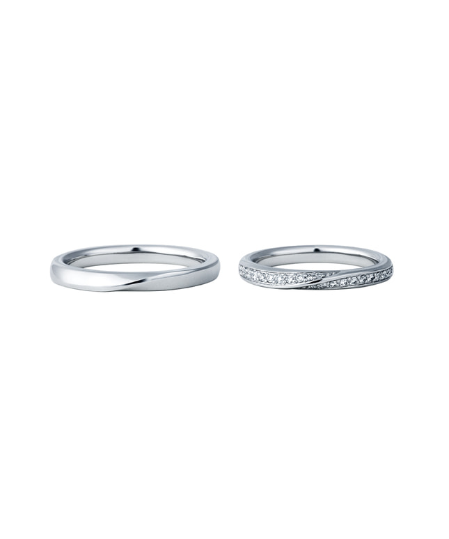 オーソドックスなハーフエタニティリングにはない、スタイリッシュでニュアンスのある手元に仕上げてくれます。