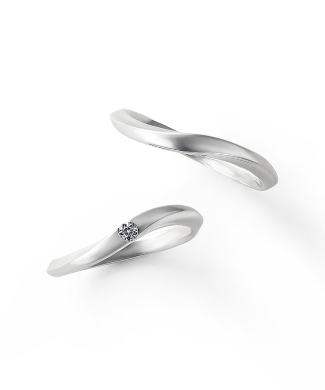 <高純度・高強度・高硬度の プラチナ999を採用>流れるような優しいラインや柔らかさのある曲面を生み出す製法と、高い硬度の両立を実現する「特殊熱硬化処理」にて一点一点お作りしています。