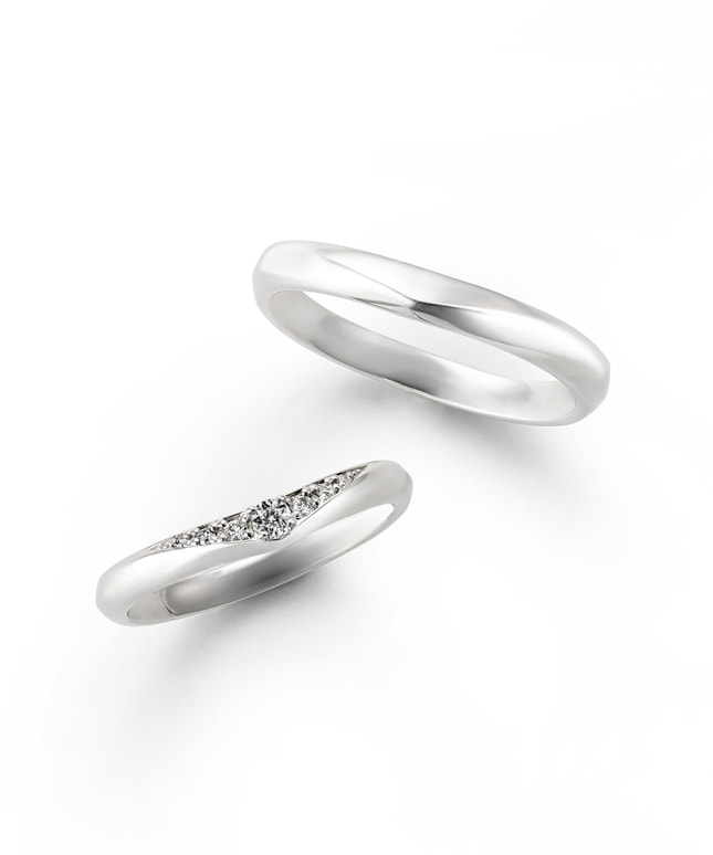 やわやかなVラインのデザインは、ふたりの輝く笑顔の口元をイメージしています。