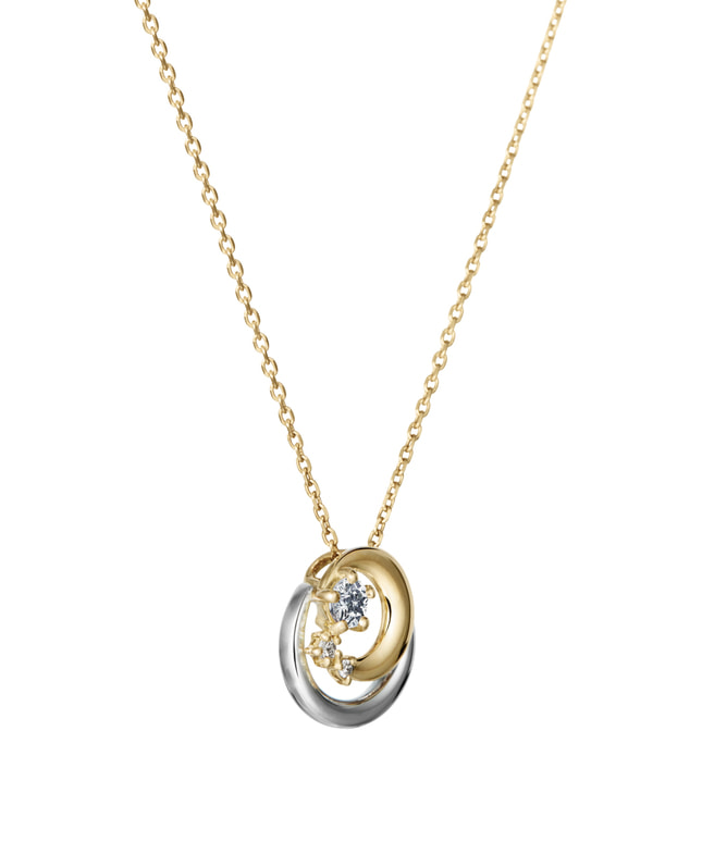 ペンダントトップにあしらわれたゴールドは「成長」の象徴とされる「三日月」を表現。