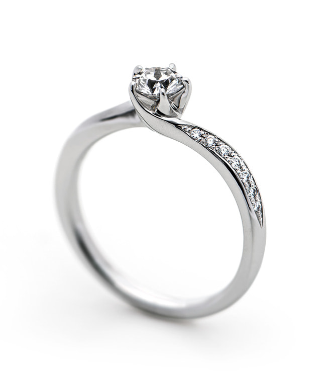 ふたりが手を取り合い愛を育む様子をイメージしたリングのラインは、優雅な美しさが魅力。