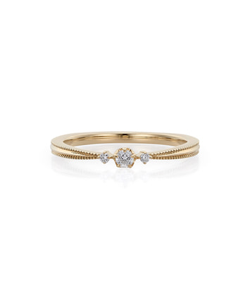 【地金】K18イエローゴールド 【リングの幅】約1.5mm 【メインストーンのカット】Wish upon a star カット 【メインストーンのカラット数】0.05ct 【ダイヤモンドの総カラット数】0.06ct 【サイズ直し範囲/展開サイズ】±2(#7は-0+2、#8は-1+2、#9~#11は-2+2、#12は-2+1、#13は-2+0)/#07~13 【備考】メレダイヤモンドはラウンドブリリアントカットです。