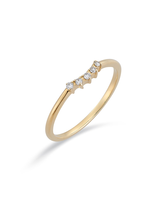 Layered Style レイヤードスタイル"大切な人と大切な時間、想い出をかさねて欲しい"との願いが込められたリング。浅めなU字にダイヤモンドをあしらい、まるでレースのようにも見えるデザインはクラシカルな印象を与えてくれます。ダイヤモンドの繊細な輝きとイエローゴールドのつやめきを感じるリングは、流行に左右されない定番スタイルとして愛されています。華奢なデザインはほかのジュエリーとも相性が良く、隣同士の指にリングをつけたり重ね付けをしたりと、様々なコーディネートを楽しんでいただけます。