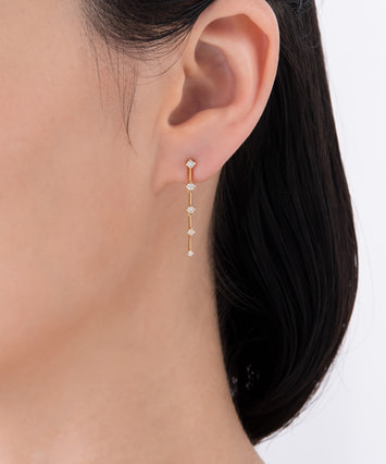 先の見えない不安な気持ちに、未来へ希望の光をもたらす道しるべとしての羅針盤"コンパス"をイメージして作られたシリーズ。羅針盤が指し示す光の帯をダイヤモンドで表現したロングピアス。スタッズ部分が別パーツ仕様になっており、単体での着用はもちろんお手持ちのピアスと合わせて、よりパーソナルなスタイリングを楽しんでいただけます。しなやかに揺れるロングサイズのピアスから動きのなかで光り輝き、横顔を華やかに彩ります。【着用情報】9/1(金)OA テレビ朝日「ウラ撮れちゃいました」にて、白石麻衣さんに着用いただきました。■様々なタイプのキャッチをご用意しております。ラインナップはこちら