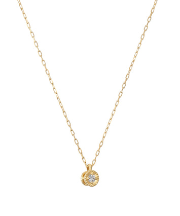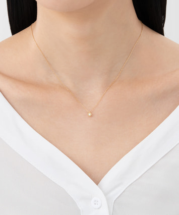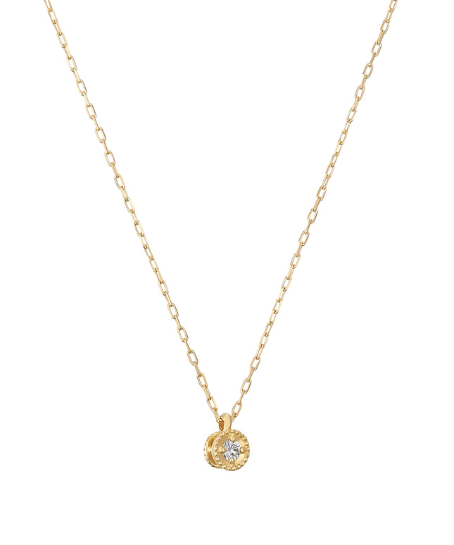 トップの縁にミルグレインを施すことでクラシカルな雰囲気のあるネックレスは、いつの時代も愛される定番デザイン。