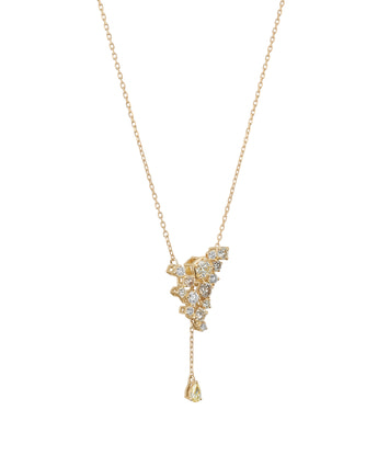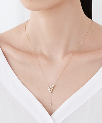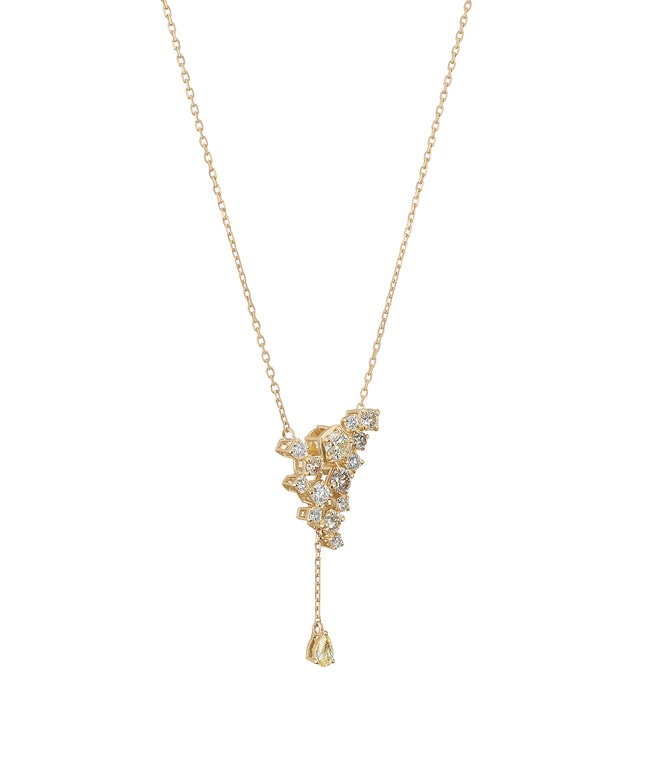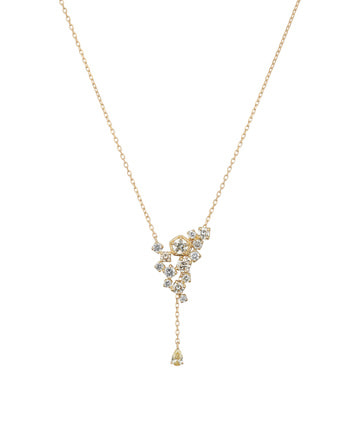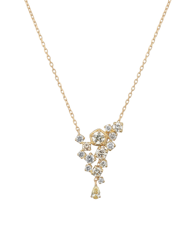 シャンパングラスの中で立ち昇る泡をダイヤモンドで表現したシリーズ。ランダムに配置したホワイト・イエロー・ブラウン3色のダイヤモンドが、躍動感のある独特な表情を生み出します。ネックレス先端のダイヤモンドをスライドすることでシルエットを自由に変えることができるのも嬉しいポイント。ふんだんにあしらったニュアンスカラーのダイヤモンドが上品な輝きをプラスします。■同シリーズのアイテムはこちら■"Wish upon a star®" ダイヤモンドについてはこちら■長さの調節ができるアジャスターはこちら※全国のフェスタリア系列店舗にてクリーニングやアフターメンテナンスを承ります。