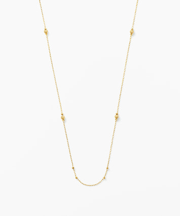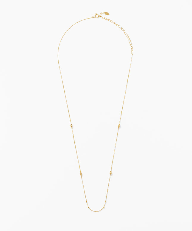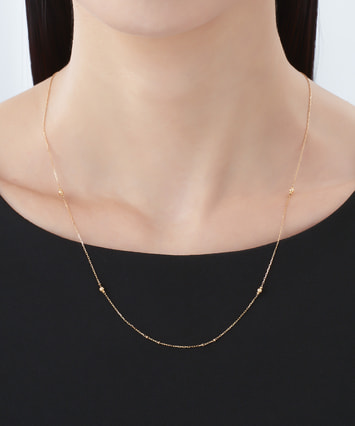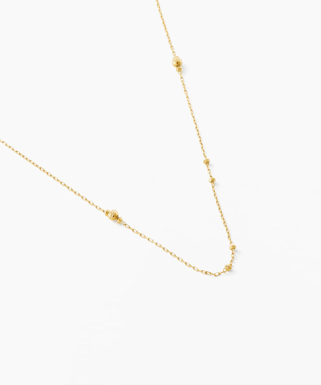 スタイリングに気品をもたらすシンプルなロングネックレス。イエローゴールドのチェーンに、繊細なカッティングがほどこされたミラーボールのパーツが輝き、スタイルにアクセントをプラス。チャームを合わせても、ネックレスのみで着けても活躍するデザインで、気分や装いにあわせて自由にアレンジをお楽しみいただけます。全長52㎝の長さは、華やかさがありながらもアクティブなシーンにも活躍してくれる仕立てに。トレンドに左右されないシンプルさは季節を問わず、いつでも胸元を繊細な輝きで彩ります。■同シリーズのラインナップはこちら■長さの調節ができるアジャスターはこちら※全国のフェスタリア系列店舗にてクリーニングやアフターメンテナンスを承ります。