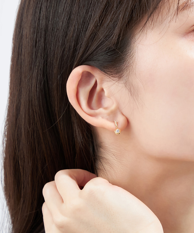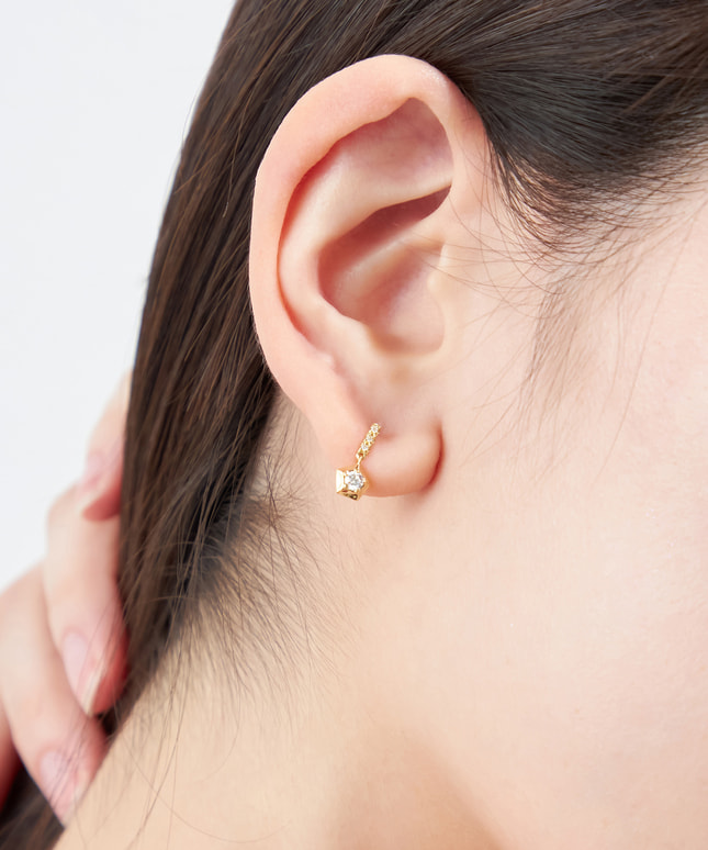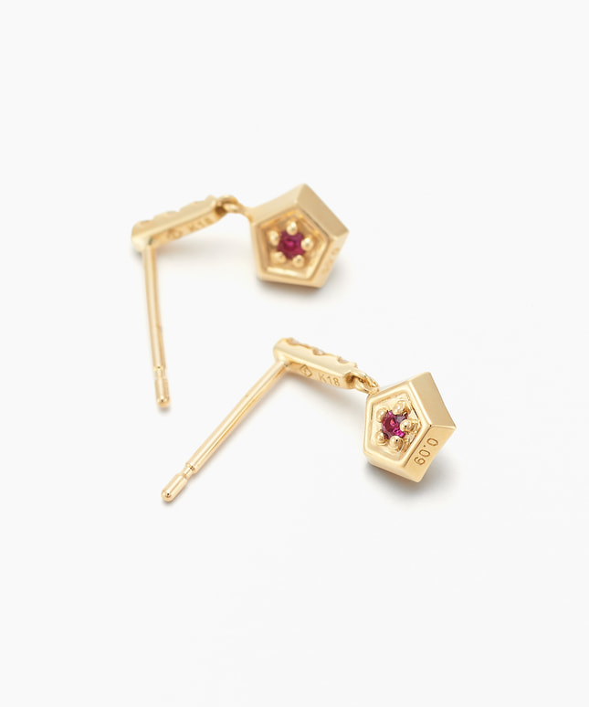 5つの異なる性質がひとつになり多彩なハーモニーを奏で、絶妙なバランス感覚が魅力の五重奏。そんな5つの楽器による重奏になぞらえた5角形のフォルムをベースにデザインされたピアス。存在感のある奥行きをつけた石座で中石部分に厚みを付けることでより視線に近づけ、ダイヤモンドを強調するセッティングに。モチーフ感を抑えたモダンな仕上がりは五角形の特徴的なフォルムが洗練されたバランスで表現されています。装飾を抑えることで素材感が際立ちボリュームのある地金感が小ぶりながらも存在感のあるピアスは、人々の視線を惹きつけます。どこか星モチーフを連想させるフォルムながらも上品で高級感のある仕上がりは、ダイヤモンドのきらめきとあいまって、日々のコーディネートにアクセントをプラスすることでしょう。同じシリーズのアイテムはこちら→ネックレス■様々なタイプのキャッチをご用意しております。ラインナップはこちら
