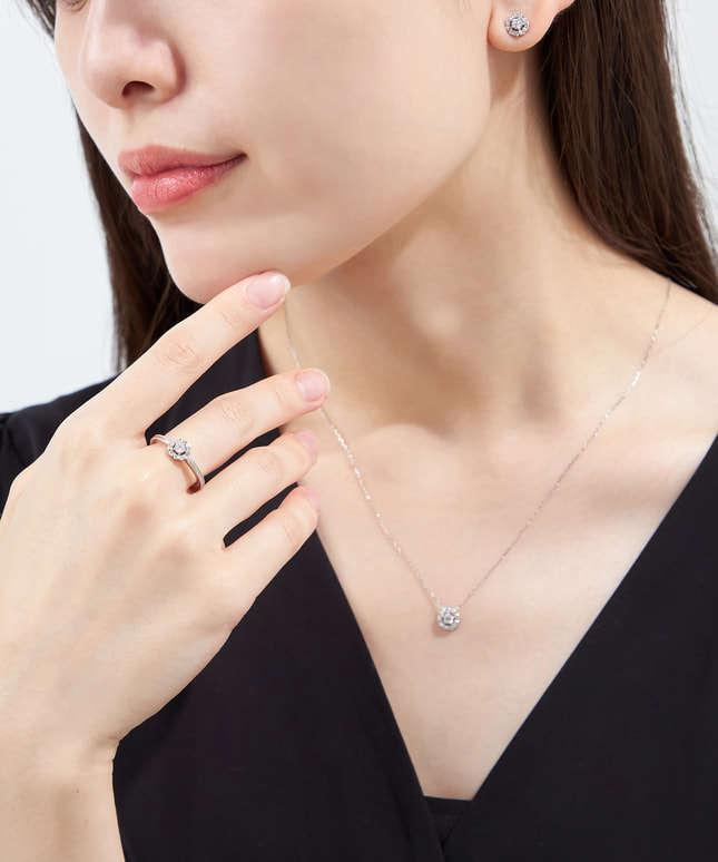 いつの時代も人々の心に寄り添う音楽は色褪せることなく輝きを放ち続けます。静寂に満ちたオーケストラホールから音が溢れかえるかのごとく、高揚感に包まれる様子を表現しました。想いや願いが強ければ強いほど共鳴し響き合い、表情豊かなきらめきを放ち続ける、そんな想いが込められています。中央にはふたつの星が浮かび上がる “Wish upon a star®” ダイヤモンドが周囲の空間を取り込むように浮び上がり、それぞれの素材の輝きと軽やかな抜け感が優雅で上品なデザイン。中石の周囲に空間をつくることで夢や希望を象徴する “Wish upon a star®” ダイヤモンドが中央から空間に溶け込むように輝き、更にプラチナとメレダイヤモンドのリズミカルな取巻きが加わることでより一層きらめきを際立たせます。■同じシリーズのアイテムはこちら→ネックレス、ピアス