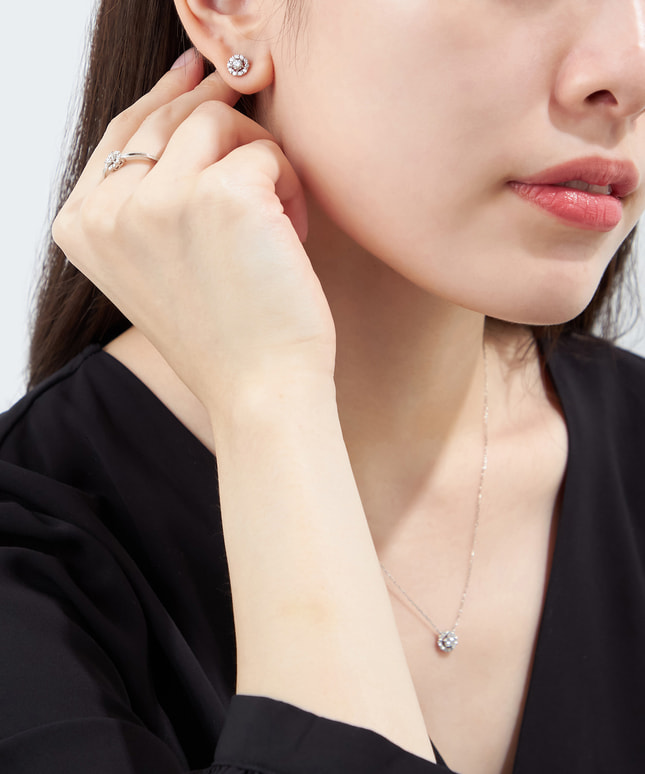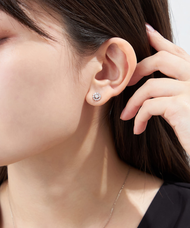 いつの時代も人々の心に寄り添う音楽は色褪せることなく輝きを放ち続けます。静寂に満ちたオーケストラホールから音が溢れかえるかのごとく、高揚感に包まれる様子を表現しました。想いや願いが強ければ強いほど共鳴し響き合い、表情豊かなきらめきを放ち続ける、そんな想いが込められています。メインのダイヤモンドが周囲の空間を取り込むように浮び上がり、それぞれの素材の輝きと軽やかな抜け感が優雅で上品なデザイン。中石の周囲に空間をつくることでダイヤモンドが中央から空間に溶け込むように輝き、更にプラチナとメレダイヤモンドのリズミカルな取巻きが加わることでより一層きらめきを際立たせます。同じシリーズのアイテムはこちら→ ネックレス、リング■様々なタイプのキャッチをご用意しております。ラインナップはこちら