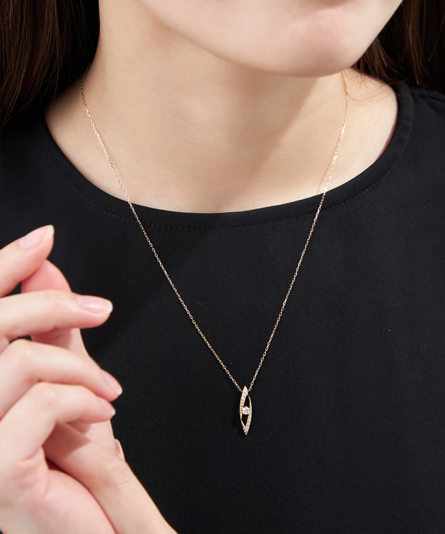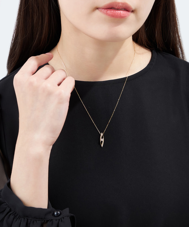 メインにあしらわれた “Wish upon a star®” ダイヤモンドがデコルテに上質なきらめきを添えてくれます。