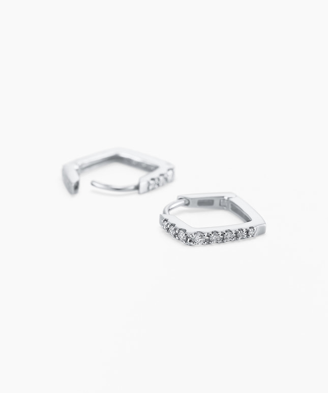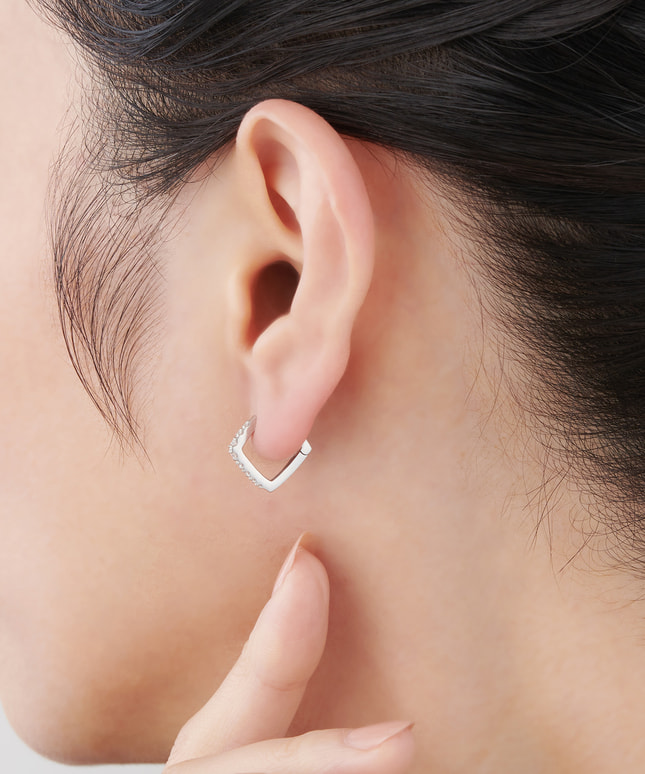 〈2023 Spring/Summer Collection - This is LOVE! -〉上質なダイヤモンドが連なるフープピアス。他にはないスクエアのモダンなフォルムは、シンプルながらもさりげなく個性のある表情に。ポストがデザイン内に収まる中折れ式のため、着け心地の良さはもちろん、後ろ姿もすっきりと見せてくれます。お持ちのピアスチャームをプラスし、アレンジも自由に楽しめるうれしい一品です。■同シリーズのアイテムはこちら■フープピアスのラインナップはこちら■様々なタイプのキャッチをご用意しております。ラインナップはこちら※天然石を使用しているため、ストーンの色や柄は一つ一つ異なる場合がございます。※全国のフェスタリア系列店舗にてクリーニングやアフターメンテナンスを承ります。