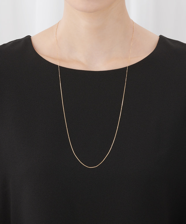 〈2023 Spring/Summer Collection - This is LOVE! -〉全長70cmのゆったりしたロングレングスのチェーンネックレス。センター部分は光を受けて上品なツヤめきを放つプレスコチェーン、サイド部分は繊細なきらめきのアズキチェーンを使用。2種類のチェーンによって生まれる輝きは、シンプルな中にもニュアンスのある表情に仕上げてくれます。スライドピン仕様のため、どんなチャームも組み合わせやすいのも嬉しいポイント。長さもスライドボールで調整でき、装いにあわせてお好みの長さで身に着けていただけます。■同シリーズのアイテムはこちら■長さの調節ができるアジャスターはこちら※全国のフェスタリア系列店舗にてクリーニングやアフターメンテナンスを承ります。