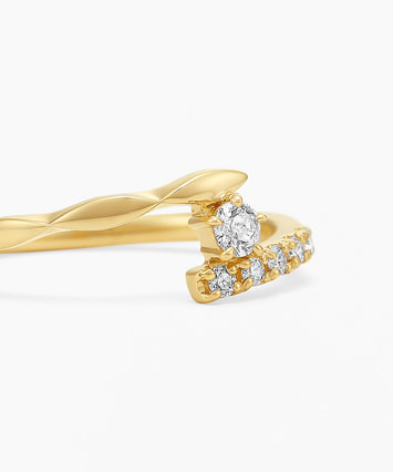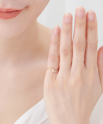 シャープなラインが凛とした印象のピンキーリング。小指にさりげないアクセントを与え、こなれた表情に仕上げてくれます。動きのあるデザインが、指をほっそり美しく見せてくれるのも嬉しいポイントです。メインには大小ふたつの星が映し出されるフェスタリアのオリジナルカット “Wish upon a star®” ダイヤモンドをセッティング。身に着ける方にいつもお守りのように寄り添ってくれるアイテムです。■“Wish upon a star®” ダイヤモンドのアイテムはこちら →“Wish upon a star®” ダイヤモンドとは?
