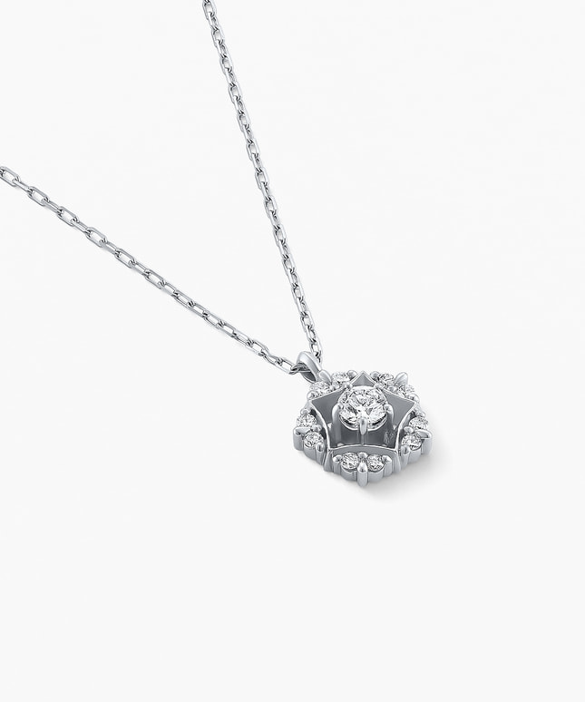 その上質な輝きは、プラチナで仕立てられた星型の照り返しとあいまって無限に広がるきらめきを生み出します。