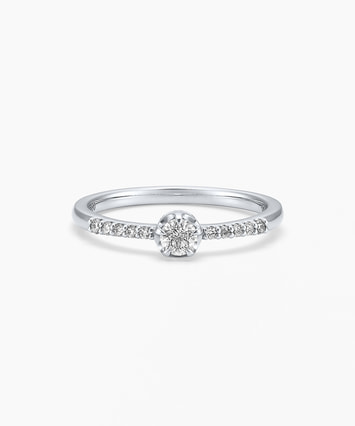 周囲に空間を持たせ高低差を付けることにより、センターストーンと取り巻きのメレダイヤモンドが響きあい、奥行きのあるきらめきを放ちます。