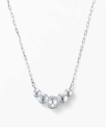 シーンに合わせて華やかさや雰囲気を変えて身に着けられる、万能なネックレスです。