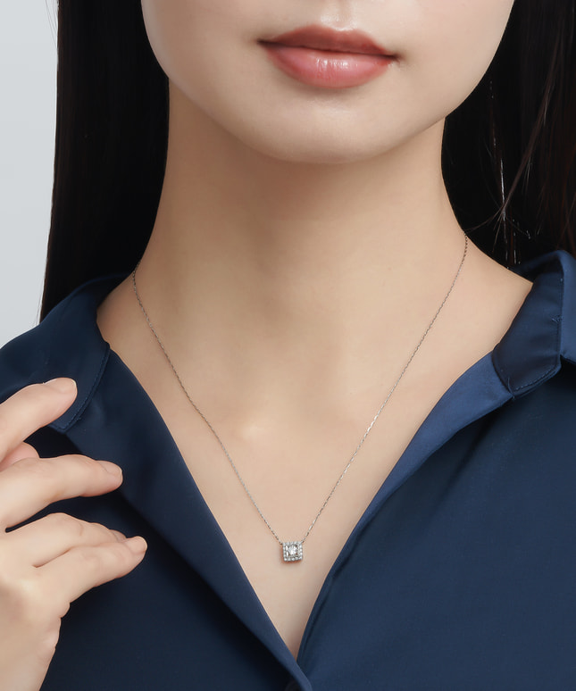スクエアの端正なフォルムに “Wish upon a star®” ダイヤモンドが輝くノーブルなネックレス。
