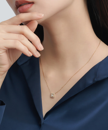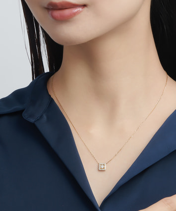 スクエアの端正なフォルムに “Wish upon a star®” ダイヤモンドが輝くノーブルなネックレス。