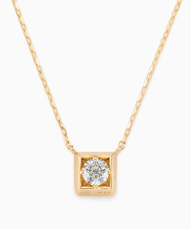 ■デザインについて 星の輝きをそのまま閉じ込めたような一体感のあるイエローカラーの“Wish upon a star®” ダイヤモンドを使用したシンプルなネックレス。 シャープな印象のスクエアフォルムは一粒デザインで、フォーマルからカジュアルまで幅広くご愛用いただけます。 K14イエローゴールド素材を使用し、高品位かつボリューム感を実現。 ダイヤモンドの輝きが地金の輝きを引き立たせ、存在感のある仕上がりに。