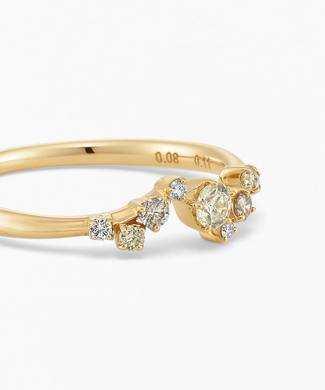 【数量限定・ONLINE SHOP先行発売】<2026 Spring Limited Jewelry> ★先行販売特典でジュエリーボックスプレゼント 2026 Spring Limited Jewelryのラインナップはこちら ■デザインについて フェスタリア20周年を記念して蘇った人気のデザインは、グラスに立ち昇るシャンパンの泡を表現しています。 ダイヤモンドの色味を3種類組み合わせ、1粒1粒の大きさにもこだわって配置を調整し絶妙なバランスに仕上げました。 リング中央にはfestariaのオリジナルカット “Wish upon a star®” ダイヤモンドをセッティング。 上品で気品溢れる華やかさを演出します。 ■スタッフのおすすめポイント ・ダイヤの繊細な輝きが美しく、洗練された印象に。 ・シンプルかつ繊細なデザインなため、フォーマルからカジュアルまでどんな装いにも合わせやすいリング ・お持ちのジュエリーとのコーディネートを楽しめるのも嬉しいポイント ■カラー・素材の展開 イエローゴールド、プラチナの2色。 イエローゴールドは、最も華やかさがあり、特にイエローベースのお肌になじみやすい色です。 ■“Wish upon a star®” ダイヤモンドのアイテムはこちら“Wish upon a star®” ダイヤモンドとは? ■サイズガイドはこちら ※数量限定商品のため、無くなり次第終了となります。 ※全国のフェスタリア系列店舗にてクリーニングやアフターメンテナンスを承ります。