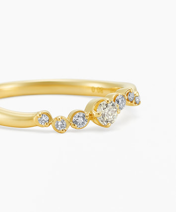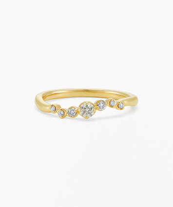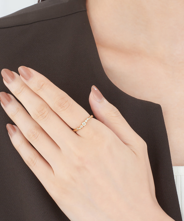 やさしいS字のラインは指をほっそり美しく見せてくれるのも嬉しいポイント。華やかなイエローゴールドのツヤ感とあいまって、手元を明るく彩ります。