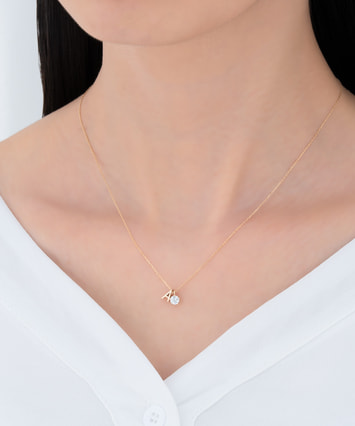 ゴシック体のイニシャルが可愛らしい印象のネックレス。