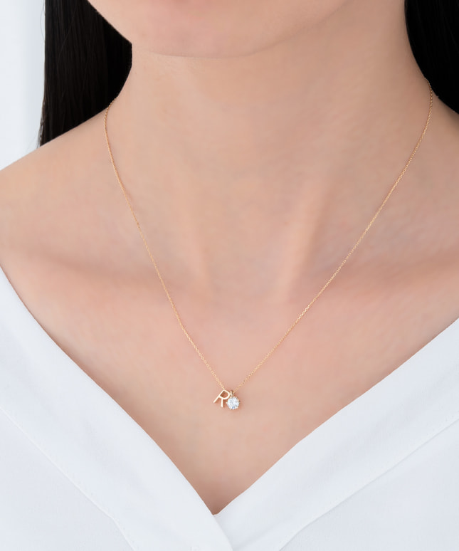 ゴシック体のイニシャルが可愛らしい印象のネックレス。