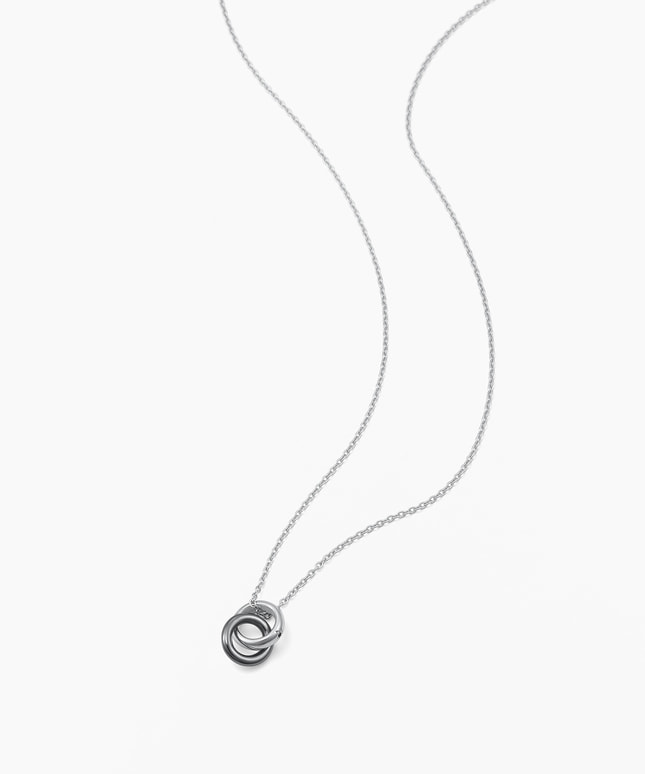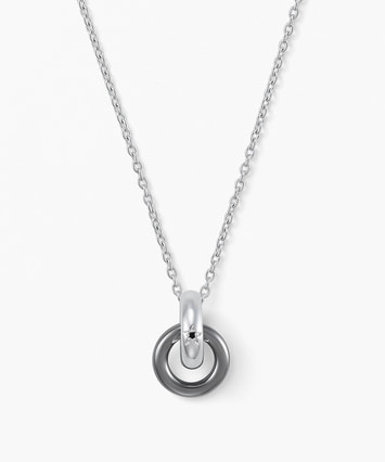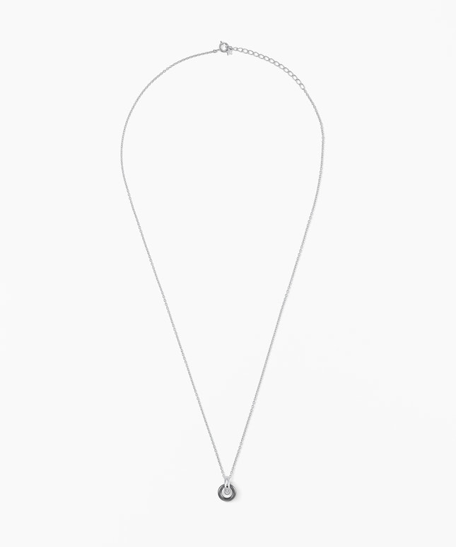 リングをふたつつなげたようなデザインのトップに、ブラックダイヤモンドがきらめきます。
