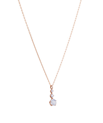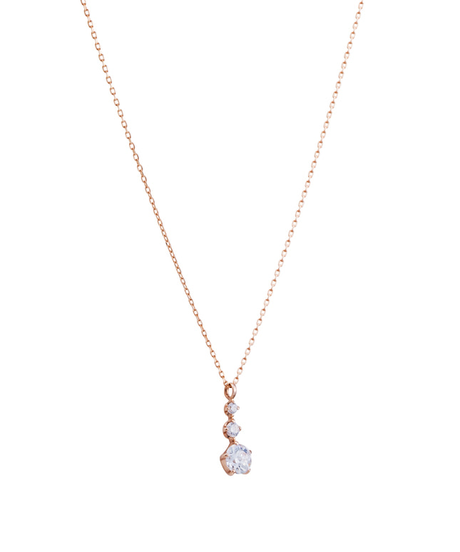 ピンクゴールドの優しい色合いがキュービックジルコニアの輝きを引き立てるネックレスです。