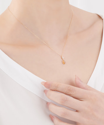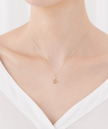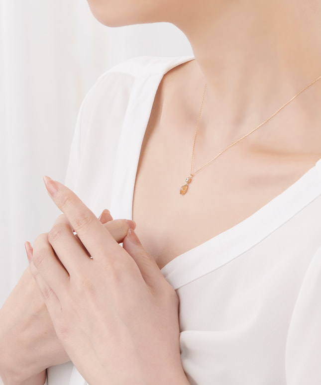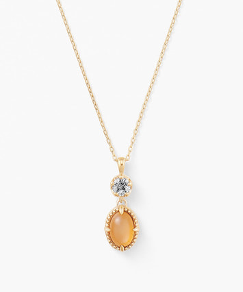 6月の誕生石ムーンストーンは、とろりとしたミルキーカラーが印象的なオレンジムーンストーンをクラシカルなデザインでネックレスに仕立てました。