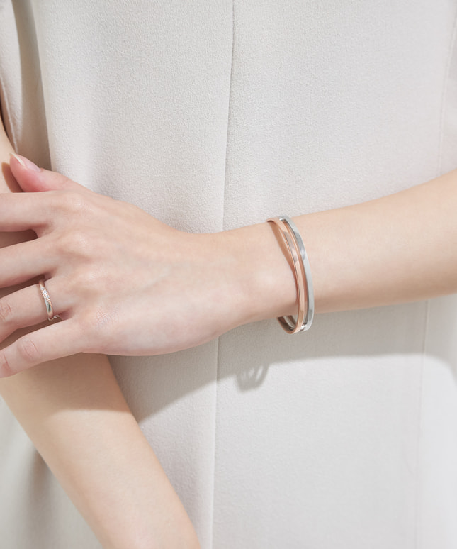 シンプルで洗練された大人のためのペアバングル。着脱しやすいよう磨き上げられた部分が装着する際の痛みを極力まで軽減し、ストレスフリーでお使いいただけます。バングルの内側にセッティングされた「ムーンストーン」は「恋人たちの石」ともいわれ、おふたりの愛がより幸せに導かれますように、という願いが込められています。※全国のフェスタリア系列店舗にてクリーニングやアフターメンテナンスを承ります。■ペアのバングルはこちら■ペアジュエリーのラインナップはこちら#バングル #地金ブレスレット #地金ジュエリー #ペアジュエリー