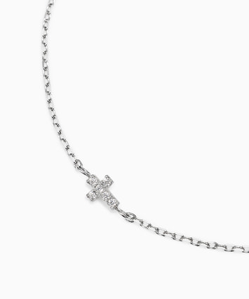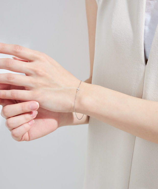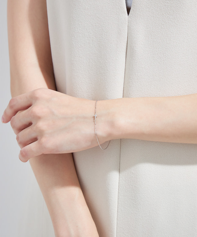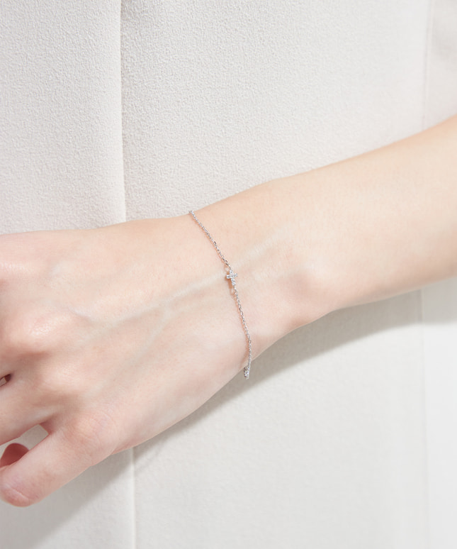 ギフトにもおすすめの王道デザインのブレスレット。災いから身を守ってくれると言われる「守護」のモチーフであるクロスを、あえて横向きに配置したデザインがワンポイントに。つややかなプラチナコーティングの質感が、コーディネートを上品に演出します。☆オンラインショップのみの販売☆無くなり次第終了となります。■長さの調節ができるアジャスターはこちら※全国のフェスタリア系列店舗にてクリーニングやアフターメンテナンスを承ります。