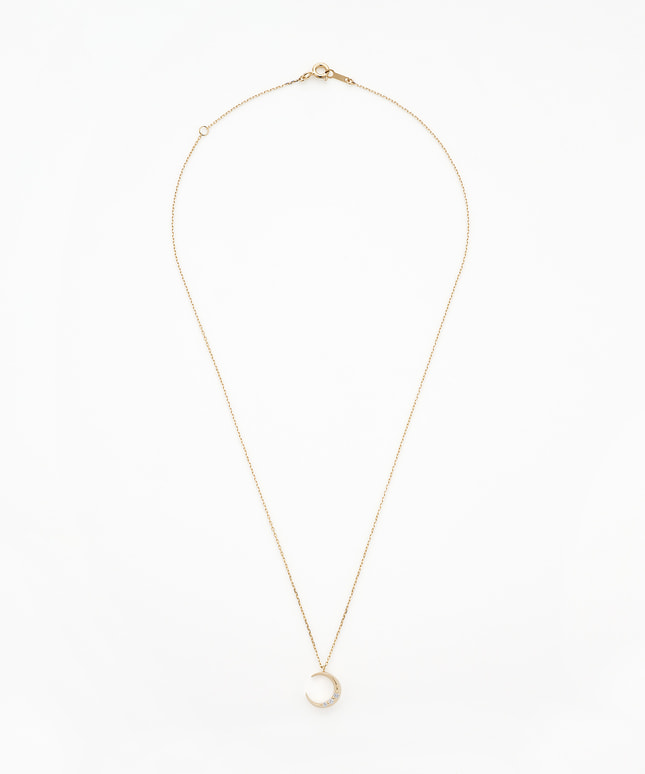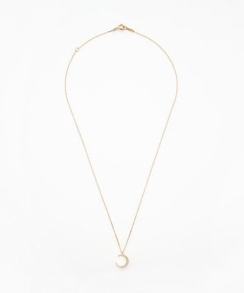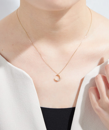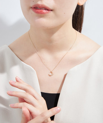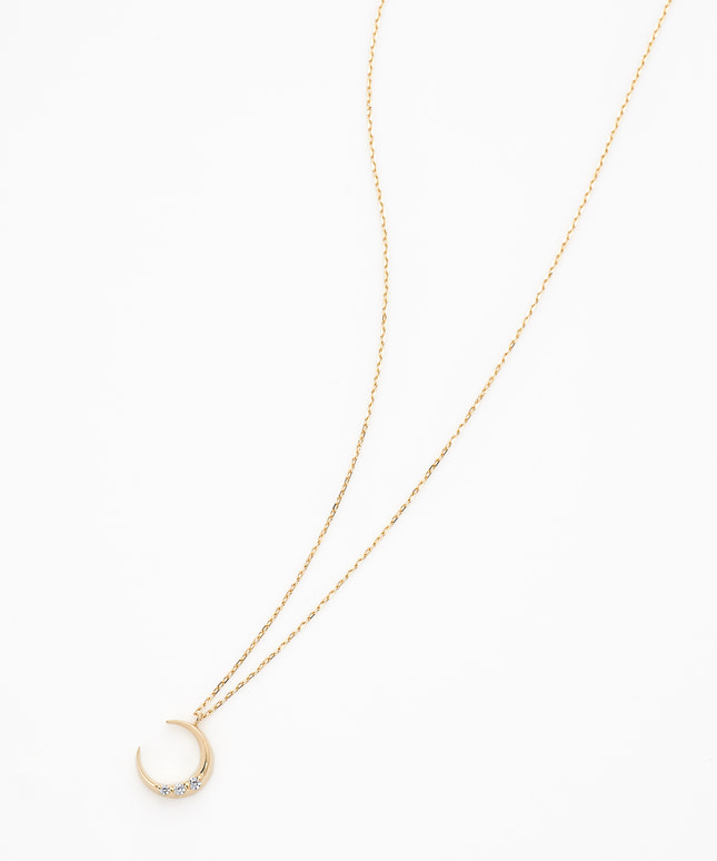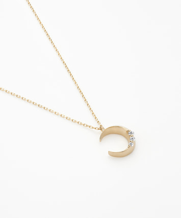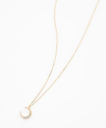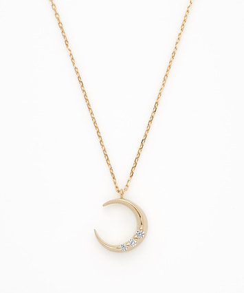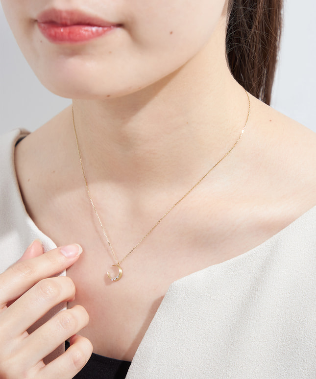 月モチーフと相性の良いゴールドカラーのチェーンは肌映りが良く、シンプルな装いにもアクセントを足してくれます。