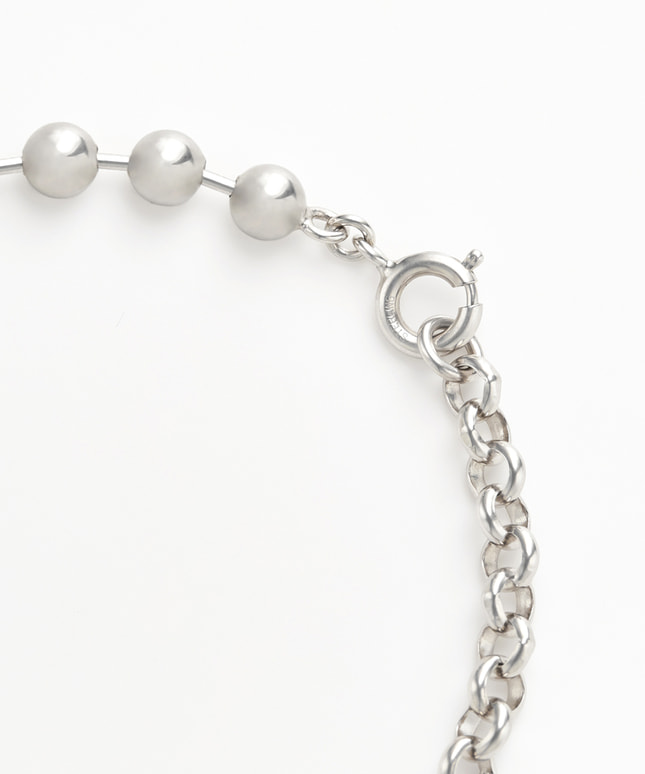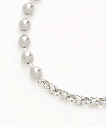 2種類のチェーンを組み合わせた、着け方によって異なる表情を見せるブレスレット。