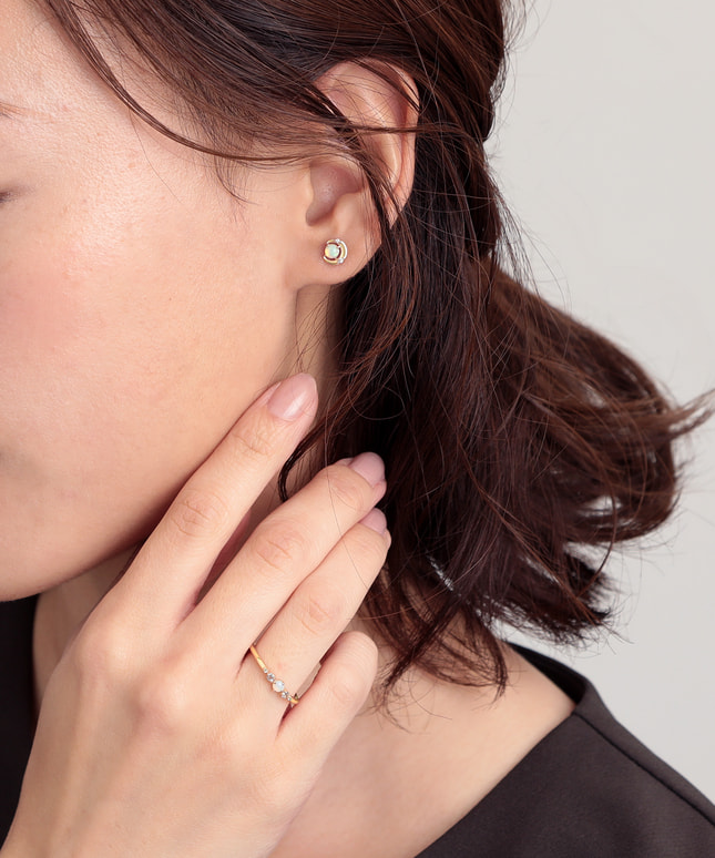 「たくさんの愛に溢れた日々を願う…」という想いを込めて生み出されたシリーズ。メインにあしらわれたオパールは、見る角度や光によって多彩な表情を楽しめる、まるで万華鏡のような宝石。「希望」「幸運」といったポジティブな石言葉を持ち、身に着ける人のまだ見ぬ才能を開花させ、創造性を高めるパワーがあるとも言われます。細やかなダイヤモンドが添えられたデザインは、シンプルながらもアクティブさを感じる佇まいに。自分自身へのご褒美ジュエリーはもちろん、大切な方への贈り物としてもおすすめです。■同シリーズのアイテムはこちら※天然石を使用しているため、ストーンの色や柄は一つ一つ異なる場合がございます。■様々なタイプのキャッチをご用意しております。ラインナップはこちら※全国のフェスタリア系列店舗にてクリーニングやアフターメンテナンスを承ります。