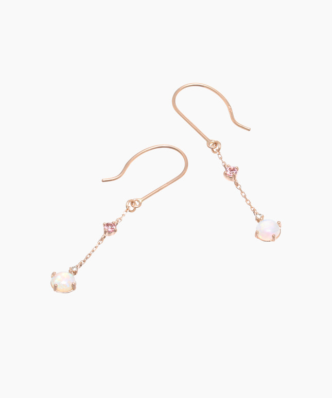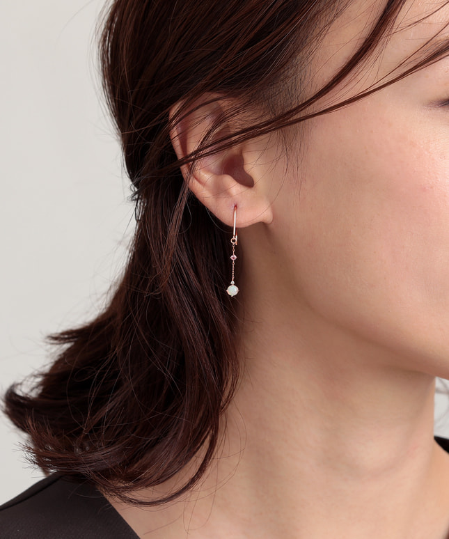 「たくさんの愛に溢れた日々を願う…」という想いを込めて生み出されたシリーズ。メインにあしらわれたオパールは、見る角度や光によって多彩な表情を楽しめる、まるで万華鏡のような宝石。「希望」「幸運」といったポジティブな石言葉を持ち、身に着ける人のまだ見ぬ才能を開花させ、創造性を高めるパワーがあるとも言われます。優しく可憐な風合いのピンクトルマリンとダイヤモンドをあしらったデザインが、顔まわりに上品な輝きを添えてくれます。自分自身へのご褒美ジュエリーはもちろん、大切な方への贈り物としてもおすすめです。■同シリーズのアイテムはこちら※天然石を使用しているため、ストーンの色や柄は一つ一つ異なる場合がございます。■様々なタイプのキャッチをご用意しております。ラインナップはこちら※全国のフェスタリア系列店舗にてクリーニングやアフターメンテナンスを承ります。#フックピアス #揺れるピアス #10月誕生石 #ピンクトルマリン #オパール #ピアス ピンクゴールド #ピアス 3万円予算