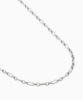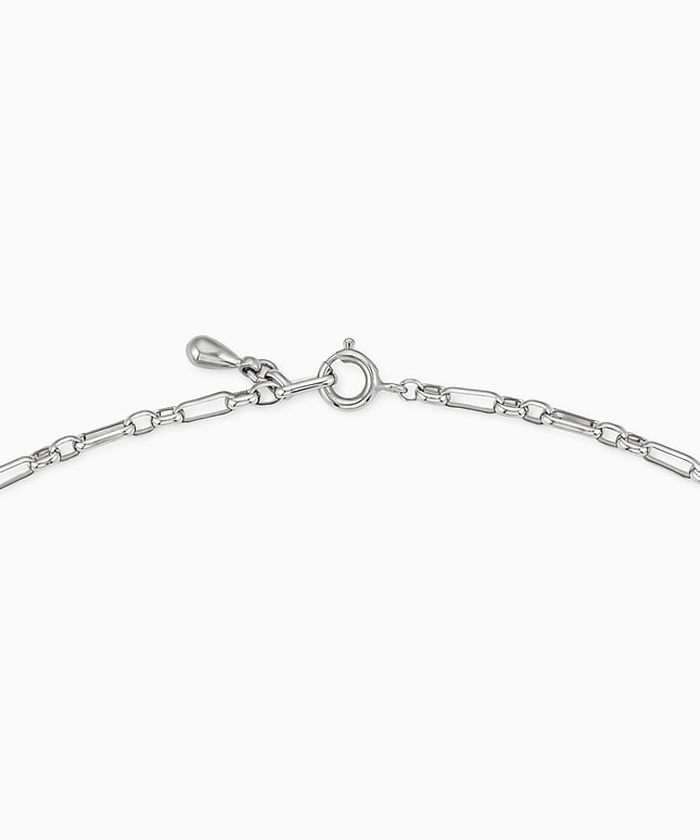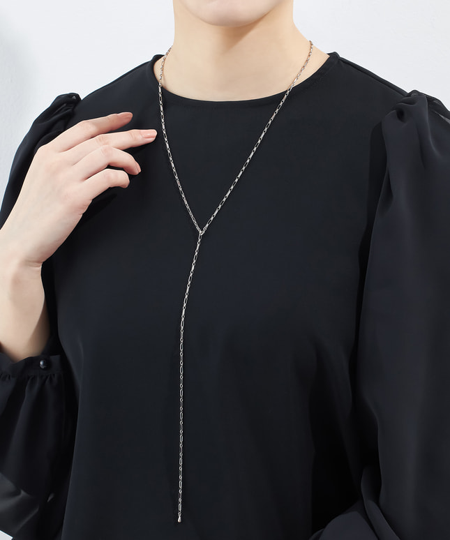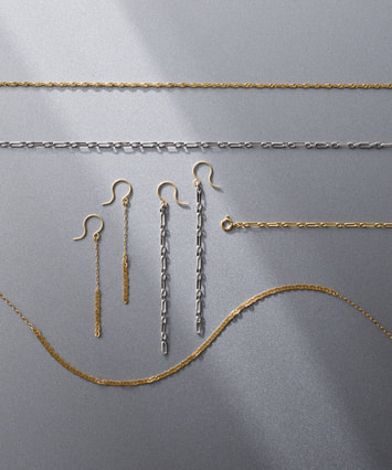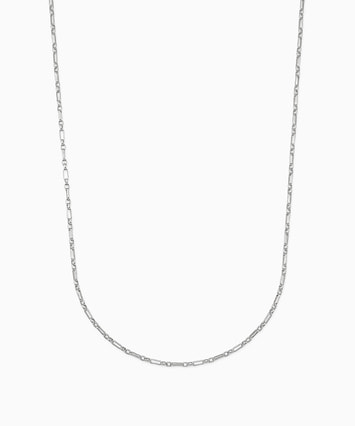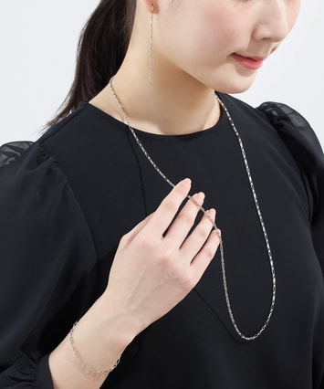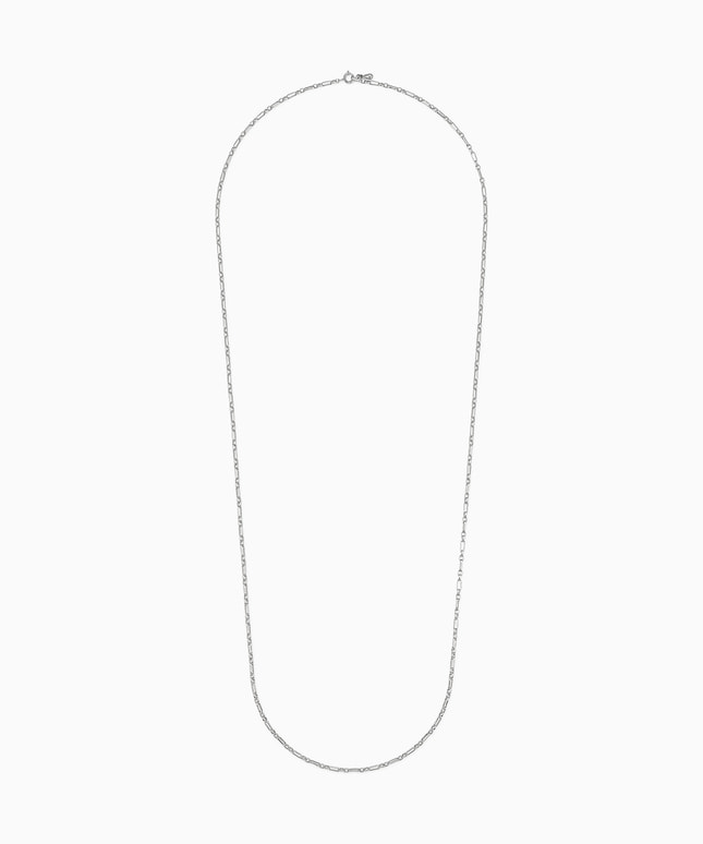 さりげない存在感を放つフィガロチェーンは、シンプルな中にもモダンでスタイリッシュなムードを感じさせます。