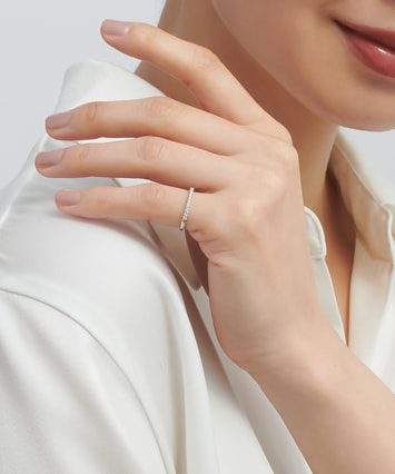 永遠のベーシックとして人気が高いハーフエタニティのピンキーリング。ダイヤモンドの存在感を際立たせるためのセッティングやバランスが、あらゆる角度からきらめきを引き立たせ豊かな表情を生み出します。地金部分は裏抜きをしないことで、指に馴染むなめらかな着け心地を実現。計算された幅や厚みのバランスは変形にも強く、長く愛用できる仕立てに。洗練されたフォルムは、他のリングとの重ねづけも相性抜群です。ダイヤモンドはHカラー、SIクラスのクラリティ、Goodカット以上の品質の中から厳選したもののみを使用。さらにその輝きを最大限に引き立たせる極小の爪にこだわり、究極のベーシックデザインだからこそ輝きの美しさを追及しました。一切の妥協を許さないその仕上がりと品質は、年齢やオケージョンを問わず時を超えて愛せる逸品です。■同シリーズのハーフエタニティリングはこちら■ピンキーリングのラインナップはこちら※全国のフェスタリア系列店舗にてクリーニングやアフターメンテナンスを承ります。
