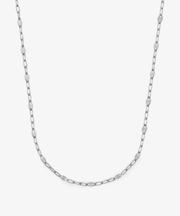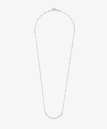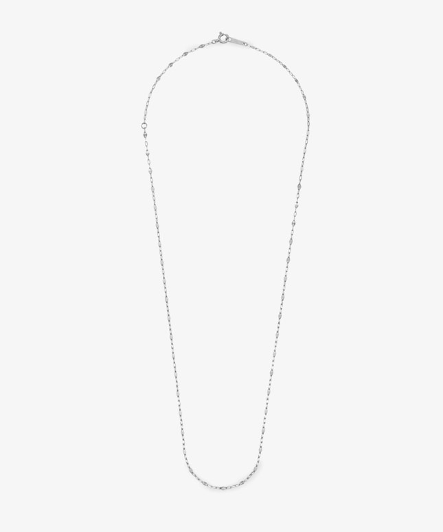 シンプルながらもデコルテにニュアンスを与えてくれるチェーンネックレス。等間隔にあしらわれたペタルパーツが光を受けるたびにきらめき、さりげなくアクセントをプラス。お持ちのトップやチャームと合わせたり、素肌になじむように単品で着けたり、気分や装いに合わせて自由なアレンジをお楽しみいただけます。■長さの調節ができるアジャスターはこちら※全国のフェスタリア系列店舗にてクリーニングやアフターメンテナンスを承ります。#チェーンネックレス #ネックレス 45cm #地金ジュエリー